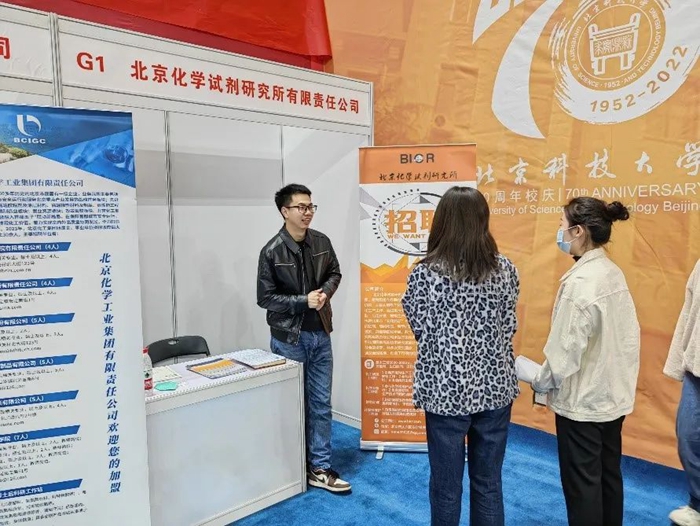 為落實(shí)北京化工集團(tuán)“十四五”人才發(fā)展規(guī)劃,加強(qiáng)青年人才隊(duì)伍建設(shè),集團(tuán)人力資源部積極組織所屬企業(yè)參加春招。試劑所、華騰新材、華騰檢測(cè)先后參加了2月24日北京科技大學(xué)、2月27日北京理工大學(xué)2023屆畢業(yè)生春招首場(chǎng)大型綜合雙選會(huì)。招聘會(huì)上,各企業(yè)通過宣傳片、PPT、宣傳冊(cè)、面對(duì)面交流等方式向畢業(yè)生介紹公司業(yè)務(wù)發(fā)展、崗位需求、員工職業(yè)發(fā)展等情況,讓他們更加系統(tǒng)全面了解化工集團(tuán),加入化工集團(tuán)。