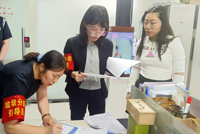 在北搪公司黨委的領導下,公司建立垃圾分類專員檢查機制,定期對各項目、各區域的垃圾分類容器設置是否合理、清運合同(協議)是否簽訂、清運臺賬建立是否規范及宣傳引導是否到位等日常管理情況進行監督檢查,發現問題,立即督促整改,不斷提高生活垃圾分類的自覺性、準確率。同時號召廣大黨員結合“黨員雙報到”“桶前值守”等活動,積極投身所屬社區生活垃圾分類志愿服務活動。