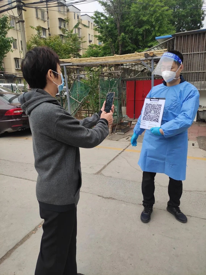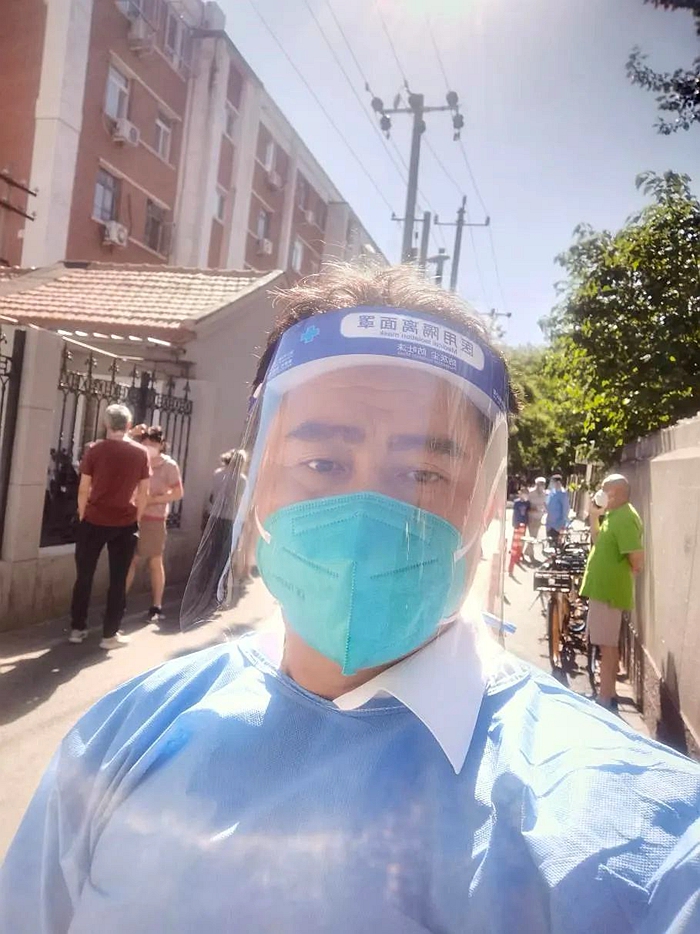 5月的天氣,溫度說升就升,每天2次4個小時的防護服穿下來,下崗時每每全身濕透,但我一點也不后悔,看著手機里每次錄入600人、700人、800人等的信息時,內心升起一種無比的自豪,北京全員核酸檢測里有我的一份汗水。