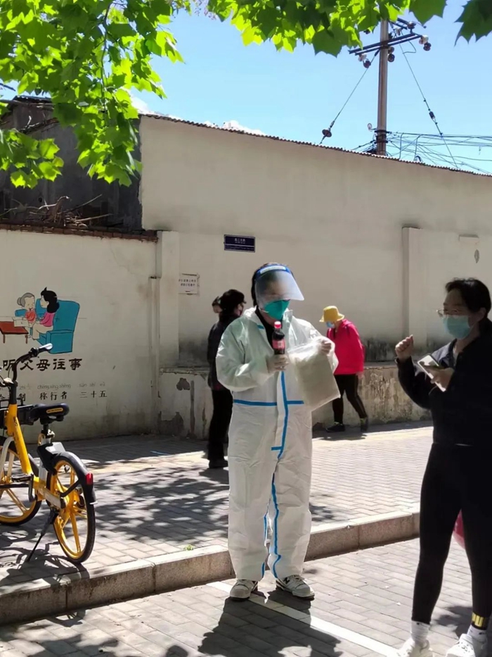 維持檢測秩序、進行現場消殺、撕拆采樣拭子、協助拆裝門磁……在做好個人防護的同時,我在盡力做著自己能做的一切。天冷的時候給同伴遞上擋風的棉衣;酷暑時,為醫護人員送上降溫的冰水;遇到人們的各種不滿和誤解的時候,也嘗試著從他們的角度去解釋、溝通。看到熟悉的面孔調侃幾句;遇到幼小的孩童,兼起看護的職責。每天中午,草草地吃完午飯,放棄午休的機會,去替換年輕的社工和志愿者,爭取讓他們多休息一會兒,好養精蓄銳、下午繼續更艱苦的戰斗。要不是眼睛有點兒見花,怕影響操作速度,我甚至想過去跟社區書記爭取機會,像年輕人那樣,穿上隔離服去錄入身份信息……