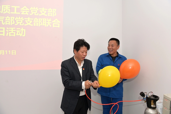 在交流中,北普公司包裝氣部黨支部書記王紹武介紹了工廠生產運行情況,并重點匯報了包裝氣黨支部全體黨員為高質量完成此次服務保障任務,及時成立臨時黨支部,強化黨建引領,發(fā)揮戰(zhàn)斗堡壘作用;黨員同志們從生產、運輸、現(xiàn)場操作,到落實安全流程、人員培訓,始終發(fā)揮先鋒模范作用,以硬核擔當帶領一線骨干,把好操作關、守好安全線,最終圓滿完成保障任務的感人經歷。中國能源化學地質工會黨支部的黨員同志們還在現(xiàn)場人員指導下,親手進行氣球充裝,親身感受重大活動服務保障中的緊張氛圍。