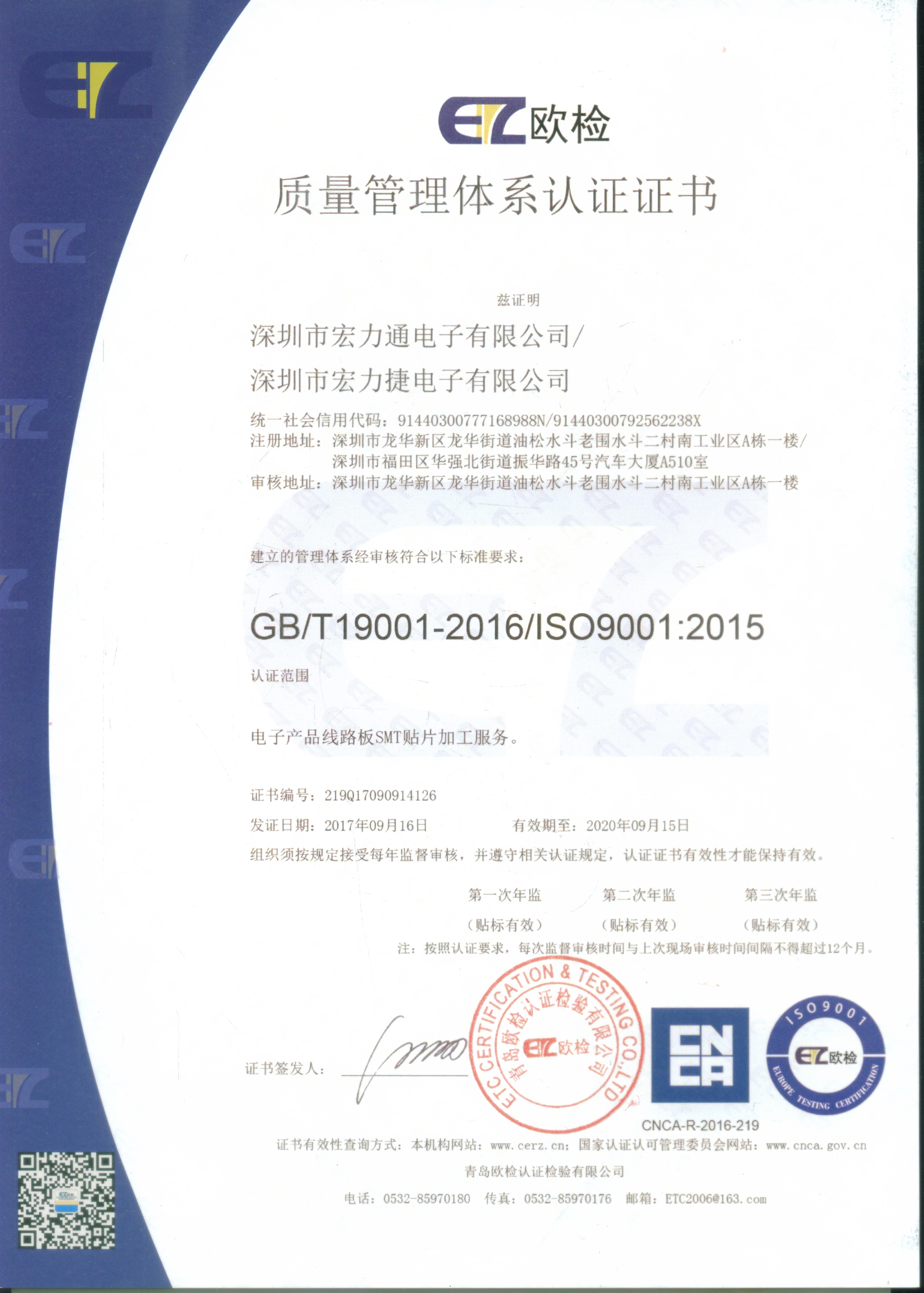 ISO9001:2015證書(shū)