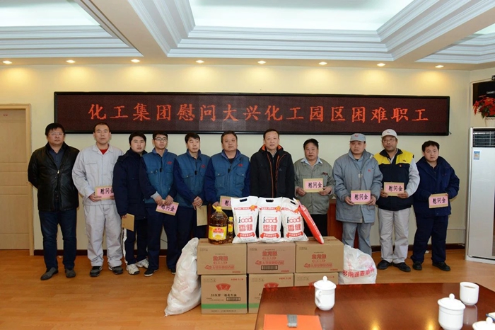 1月8日,北化集團(tuán)黨委書記、董事長劉文超一行來到大興化工園區(qū),慰問困難職工。