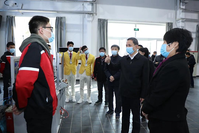 盧彥副市長一行分別來到學院數控實訓現場、世賽集訓基地、沃爾沃培訓中心、奧迪職業(yè)學校、智能工廠實訓車間,實地察看了現場教學、選手集訓、職業(yè)技能培訓、校企合作等工作開展情況。盧彥副市長詳細了解了學院一體化課程改革、學制技師培養(yǎng)、學生就業(yè)發(fā)展、世賽基地建設、社會培訓及對口幫扶等工作推進落實情況,仔細詢問了現場學生的學習生活情況,并與備戰(zhàn)第一屆全國技能大賽和第46屆世賽全國選拔賽選手和教師親切交談。