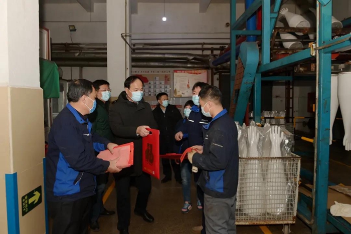 張時(shí)明一行考察了華騰橡塑公司生產(chǎn)現(xiàn)場(chǎng),華騰美居酒店的“暖心驛站”,親切慰問堅(jiān)守在一線崗位的職工和困難職工代表,帶去慰問品的同時(shí)也送上了親切的問候和真情關(guān)懷。