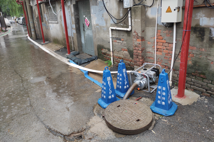 7月29日,在暴雨來襲時刻,北搪公司領導班子和干部職工連夜值守重點點位。大郊亭3號院是老舊平房宿舍區(qū),地勢低洼,也是朝陽區(qū)防汛重點點位。為應對此次強度大持續(xù)時間長的極端暴雨天氣,公司在3號院安裝了4臺汽油排水泵、4臺小型電器排水泵,鋪設排水管線800米,準備沙袋50個,清理排水雨篦子9個,由于思想高度重視、前期準備工作充分,3號院平安度過這輪強降雨。