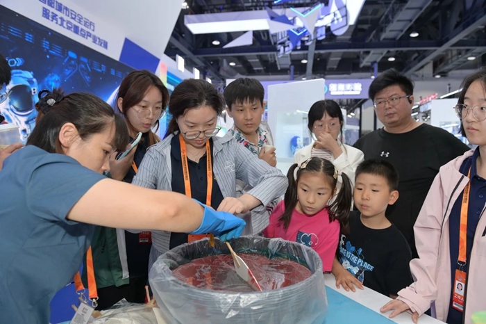 在展位現場,有的觀眾對于展示的儲氫瓶內膽專用材料高度關注,并有強烈的合作意愿,有的觀眾對展示的軟包裝膠黏劑主動提出市場開發合作意向,還有很多觀眾帶著孩子逐一學習觀摩展出的化工領域創新產品??梢哉f,化工集團的主題展位既是商業合作的溝通交流平臺,又是了解化工、學習知識的科普教育平臺。