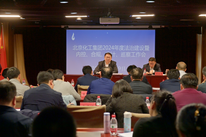 12月9日下午,北京化工集團召開2024年度法治建設暨內控、合規、審計、巡察工作會,黨委書記、董事長陳宇作總結講話,副總經理李效軍主持會議。