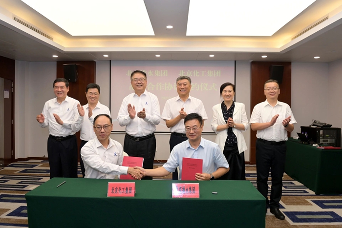7月15日,北京化工集團與北京排水集團簽署戰略合作協議?;ぜ瘓F黨委書記、董事長陳宇,黨委副書記、董事、總經理楊旭輝,黨委常委、副總經理孫紹剛,副總經理張榮寰;排水集團黨委書記、董事長張建新,黨委副書記、職工董事、工會主席王蘭,黨委委員、副總經理張志淵出席簽約儀式。