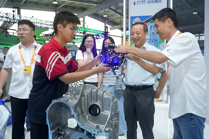 致力于職業技能人才培養的技師學院,在互動中呈現世界技能大賽金牌項目——機電一體化的卓越成果,學院以人機互聯的3D掃描和工業機器人吸引了大批參觀者駐足,讓觀眾近距離感受產教融合的創新實踐和“化工+教育”的協同價值。