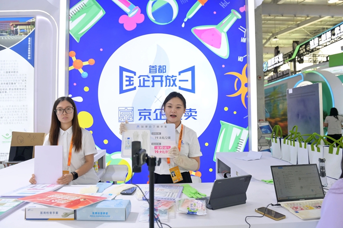 與“安靜”的產品展示形成鮮明對比,“北化體驗”和“北化市集”展區則以人們喜聞樂見的互動體驗、直播帶貨,展示著北京化工的別樣風采。