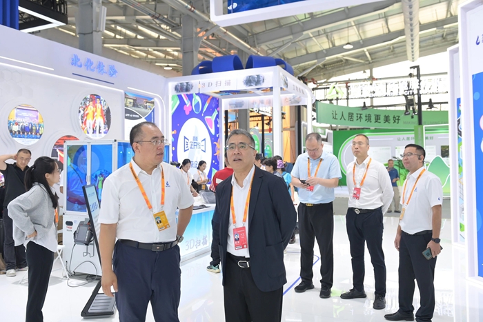市經濟和信息化局黨組書記、局長姜廣智,市國資委黨委書記、主任吳禮順先后帶隊來到集團展位,了解集團發展成果。