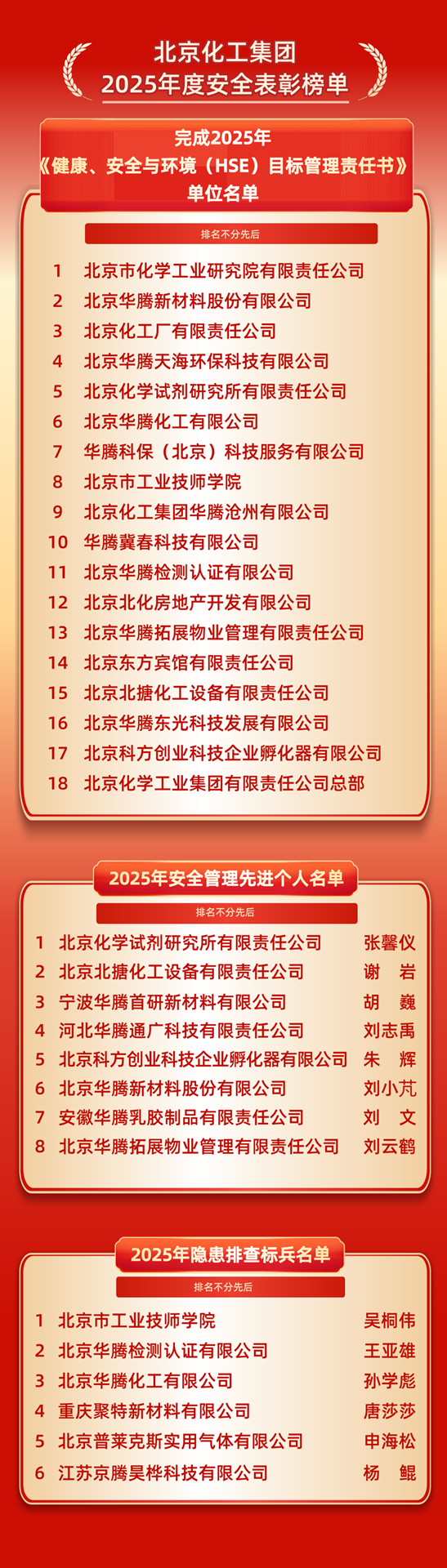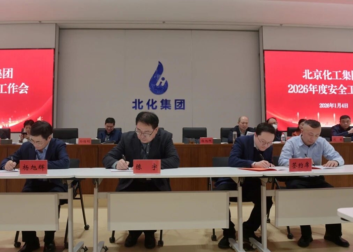會(huì)上,北京化工集團(tuán)與北京化科、北化生科、華騰新材、化研院、華騰拓展、技師學(xué)院、北搪公司等7家企業(yè)現(xiàn)場(chǎng)簽署了2026年度HSE目標(biāo)責(zé)任書(shū)。