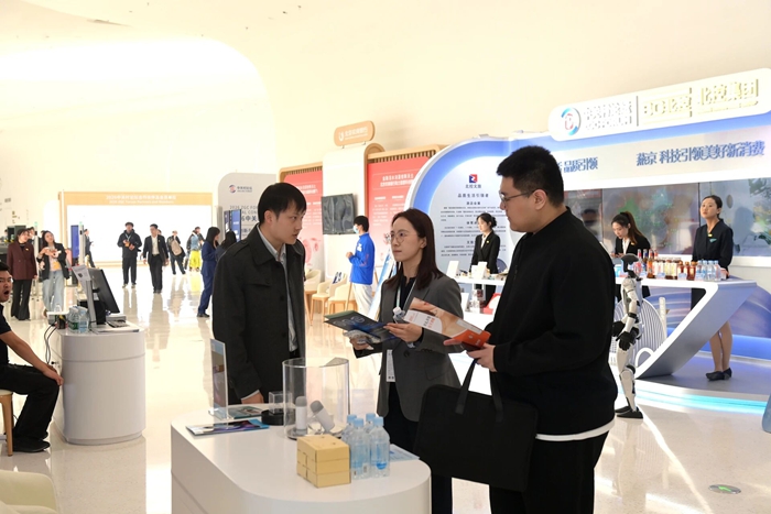 在集團展位,陳宇詳細了解展位布展、成果展示、現場對接等情況。陳宇強調,北京國際生物島是北京化工集團第二主業和生物醫藥戰略方向落地實施的重要平臺,更是服務北京國際科技創新中心建設,服務生物醫藥“新興支柱產業”發展、促進科技創新與產業創新深度融合的重要載體。陳宇勉勵北化生科參展團隊要充分借助中關村論壇這一國際性平臺,展現北化生物醫藥產業新形象、新實力,為集團高質量發展展現北化價值。