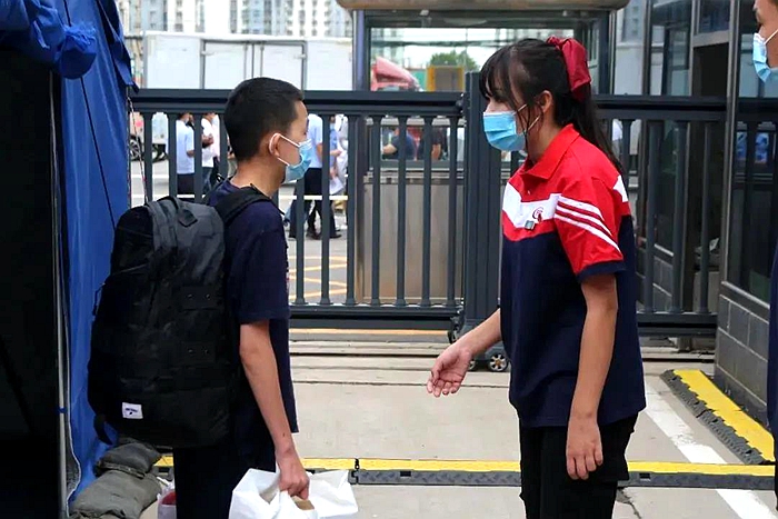 學(xué)生進(jìn)入班級后再次檢查體溫,確認(rèn)同學(xué)們的健康狀況。