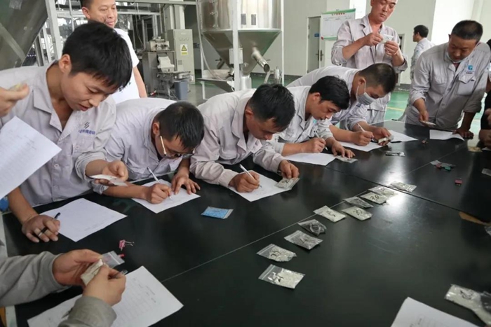 此次競賽分為雙螺桿擠出機拆裝螺桿比賽、原材料識別及產成品識別比賽,以及開機實操比賽三個部分。在前期組織干部職工進行理論培訓基礎上,25日上午正式拉開了現場比拼的帷幕。