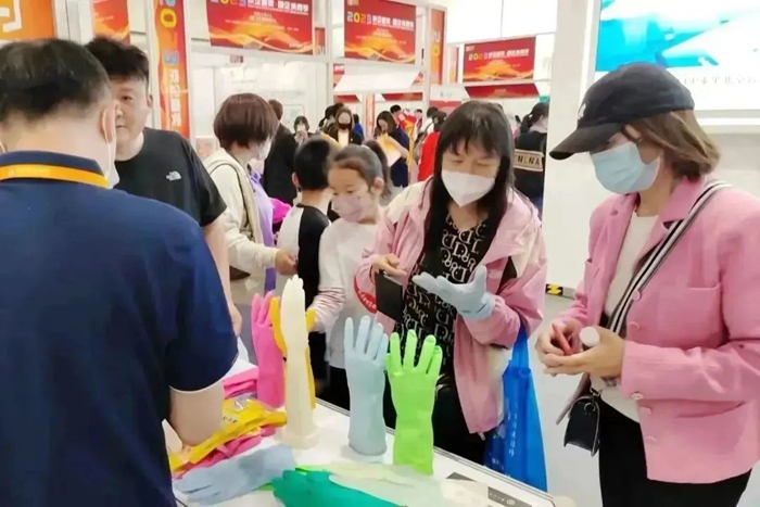 在此期間,北京市政府副秘書長劉印春,市國資委黨委書記、主任曾勁,黨委副書記、副主任,一級巡視員晉秋紅,在北京化工集團(tuán)黨委副書記、總經(jīng)理陳宇,副總經(jīng)理張榮寰陪同下走進(jìn)華騰橡塑展位參觀指導(dǎo)。大家饒有興趣地拿起展位上的乳膠手套,仔細(xì)詢問手套的用途和特性。在參觀中,曾勁對北京化工集團(tuán)聚焦戰(zhàn)略首務(wù),推進(jìn)“3+1”業(yè)務(wù),服務(wù)首都,服務(wù)民生的舉措給予充分肯定,并預(yù)祝北京化工集團(tuán)在這一消費(fèi)季活動中取得成功。華騰橡塑此次直賣的產(chǎn)品,廣受歡迎。