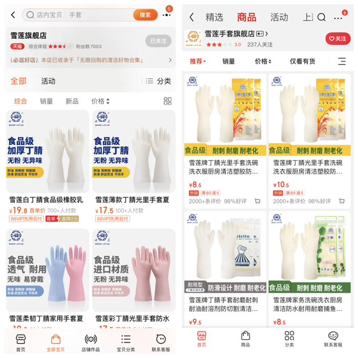原來,華騰橡塑相當一部分訂單來自為其他品牌生產(chǎn)貼牌產(chǎn)品。鼎盛時期,市面上常見的某潔、某雅的近七成手套產(chǎn)品都來自華騰橡塑的生產(chǎn)線。激烈的行業(yè)競爭,使得代工貼牌訂單的利潤空間越來越小。意識到這個問題后,華騰橡塑加大了品牌建設的投入,適時推出了自有品牌“雪蓮”、“北瑞”。