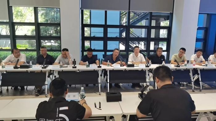 參觀團隊詳細了解了園區規劃,現場參觀了園區一站式服務中心、活動中心、員工餐廳等配套區域。在座談交流中,雙方就園區產業導入、政策引導、配套服務、園區招商等情況進行了深入交流。