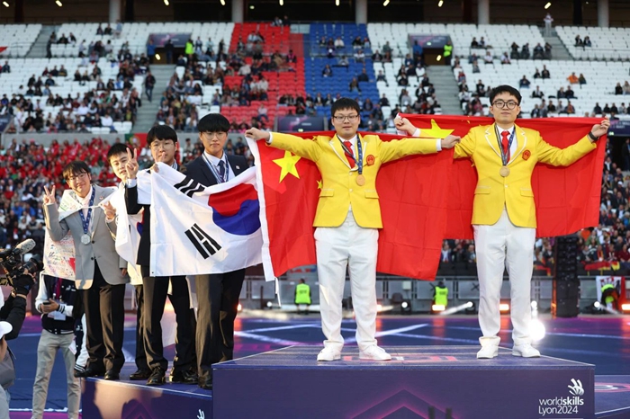中秋月圓之時,從法國里昂傳來喜訊。在剛剛結(jié)束的第47屆世界技能大賽上,中國代表團共奪得36枚金牌,9枚銀牌、4枚銅牌和8個優(yōu)勝獎,位居金牌榜、獎牌榜和團體總分首位。技師學院承接的4個世賽項目全部獲獎!其中,技師學院教師潘朝陽、羅自立出戰(zhàn)機電一體化項目斬獲金牌,這是技師學院自己培養(yǎng)的選手首次在世界技能大賽上實現(xiàn)金牌零的突破。